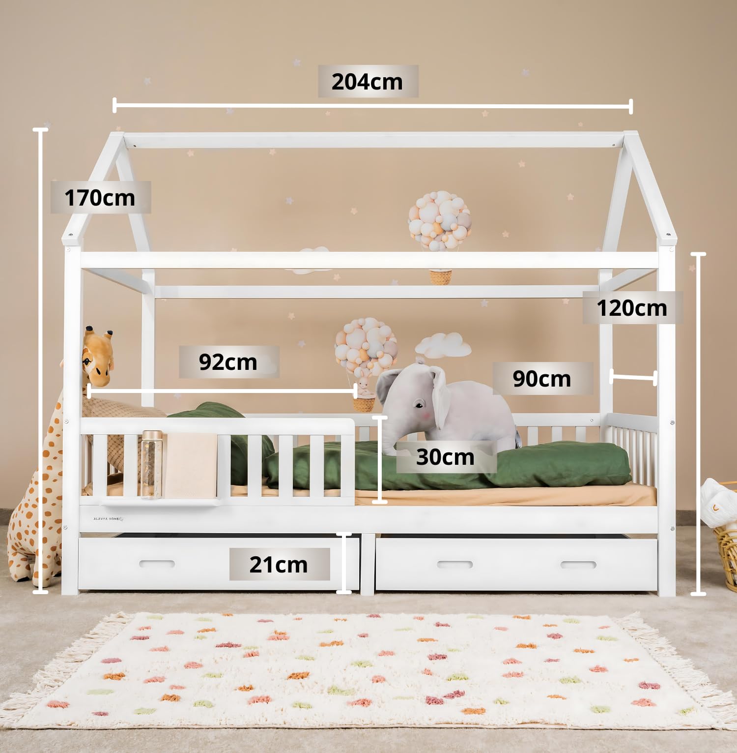 - 🎁 Willkommen im Traumland des Hausbett Cloud! Das ALAVYA HOME Hausbett Cloud ist mehr als nur ein Kinderbett - es ist eine Reise in die Welt der Träume, Geborgenheit und fantasievollen Entdeckungen. Mit seiner charmanten Hausoptik wird jedes Kinderzimmer in einen magischen Ort verwandelt, der nicht nur ein Schlafplatz ist, sondern auch ein gemütlicher Rückzugsort für Abenteuer und süße Träume.