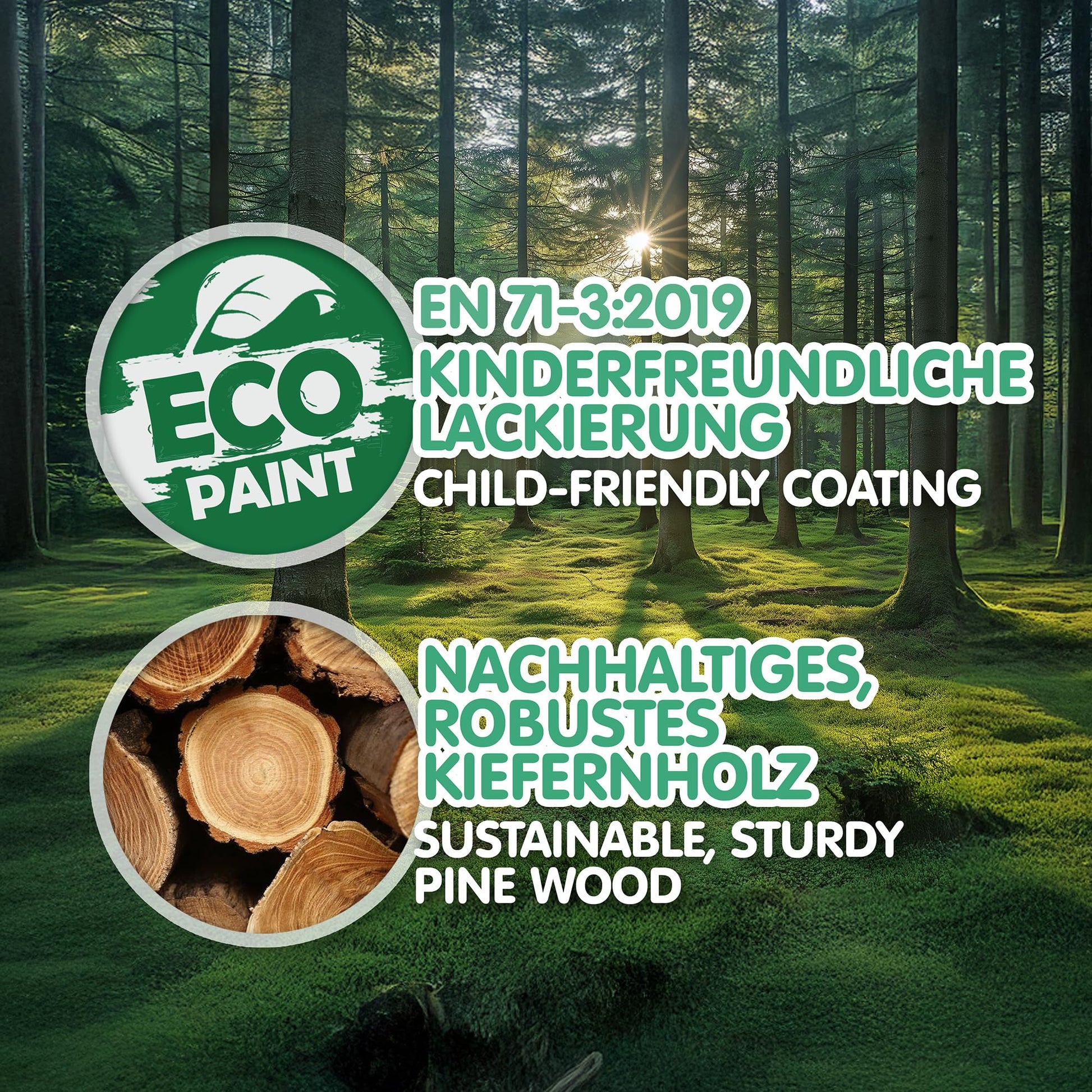 - Sicherheit an erster Stelle: Stabiles Kiefernholz und umfassender Rausfallschutz bieten maximale Sicherheit und Stabilität. Hochwertige Verarbeitung garantiert eine lange Lebensdauer. Der Rausfallschutz kann auf der Seite des Eingangs komplett entfernt werden.