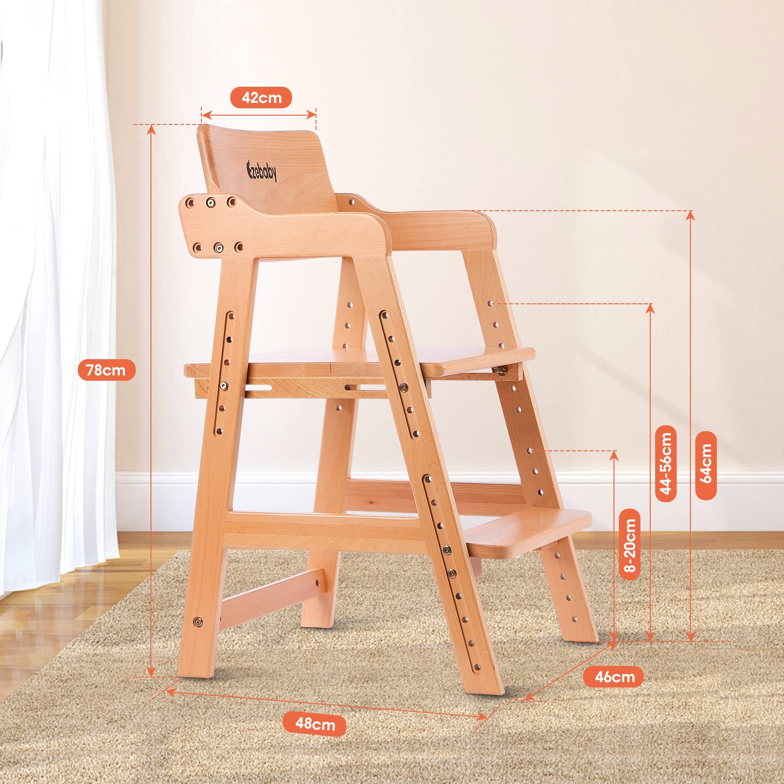 Ezebaby Hochstuhl, höhenverstellbarer Holzhochstuhl für kinder von 2 bis 12 Jahren Buchenholz Kinderstuhl, Lehrstuhl, Stabil & Sicher bis 90 kg für Kinder und Erwachsener (Natur)
