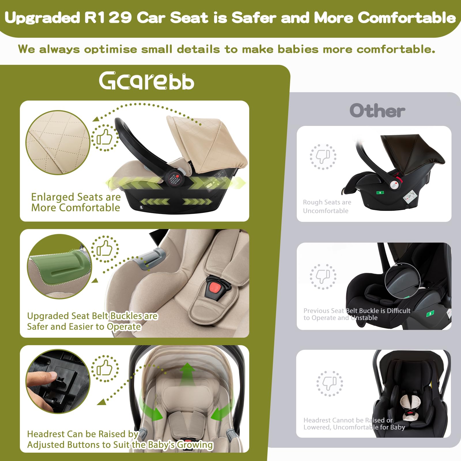 Gcarebb PU Leder 3 in 1 Kinderwagen, Buggy Mit Auto Babyschale, Mit Einem Klick Zusammenklappbarer Tragbarer Kinderwagen Komplettset, KombiKinderwagen Mit Aluminiumrahmen für Neugeborene 0-4 Jahre