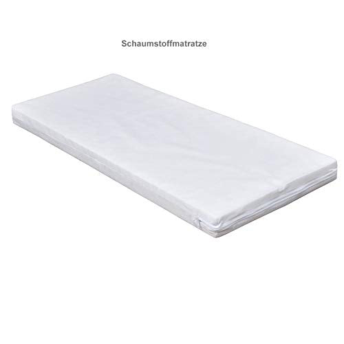 - MATRATZE - Öko-Tex zertifizierte Kindermatratze aus Polyurethan Schaumstoff mit weißem abnehmbaren und waschbaren Bezug, Maße ca. 140x70x6 cm