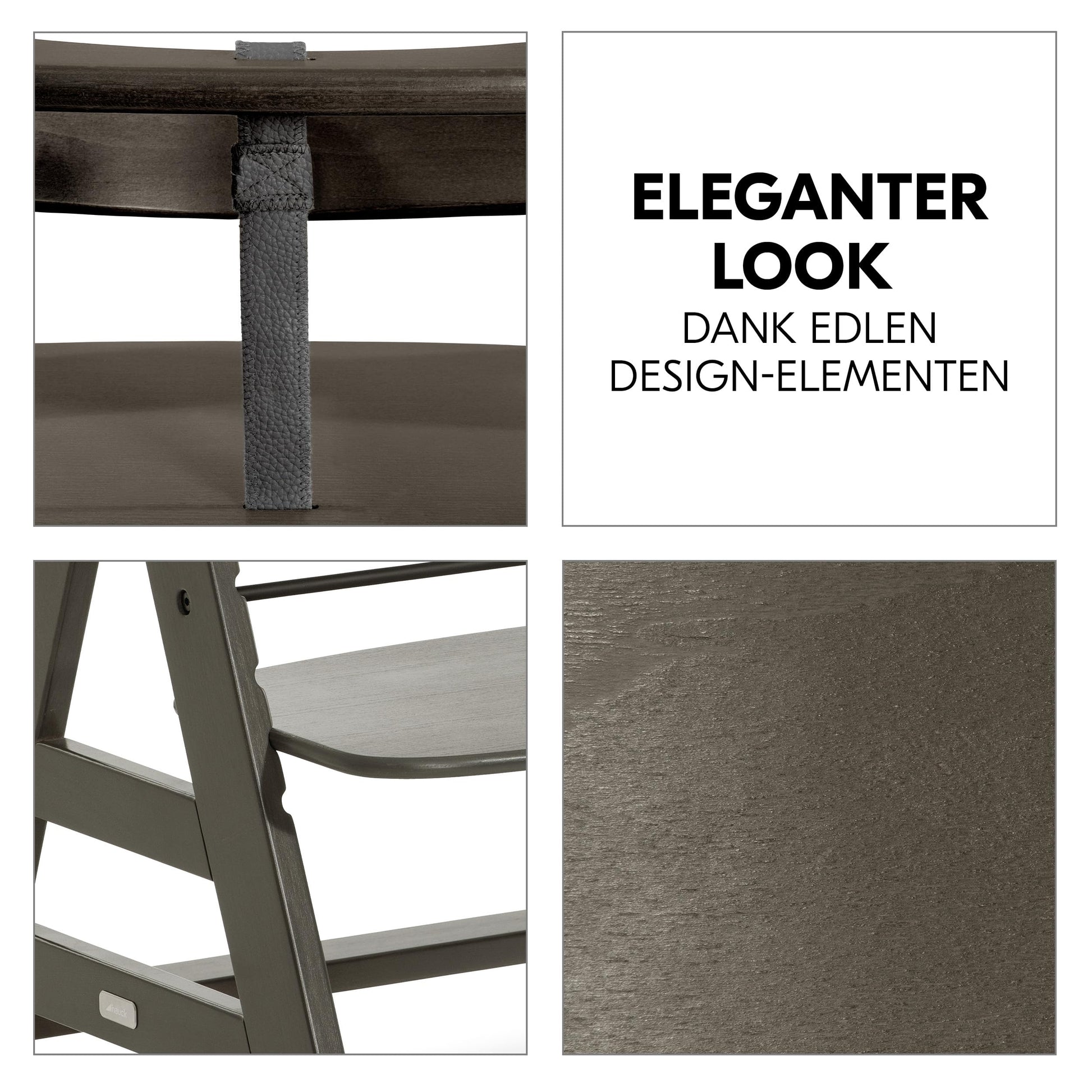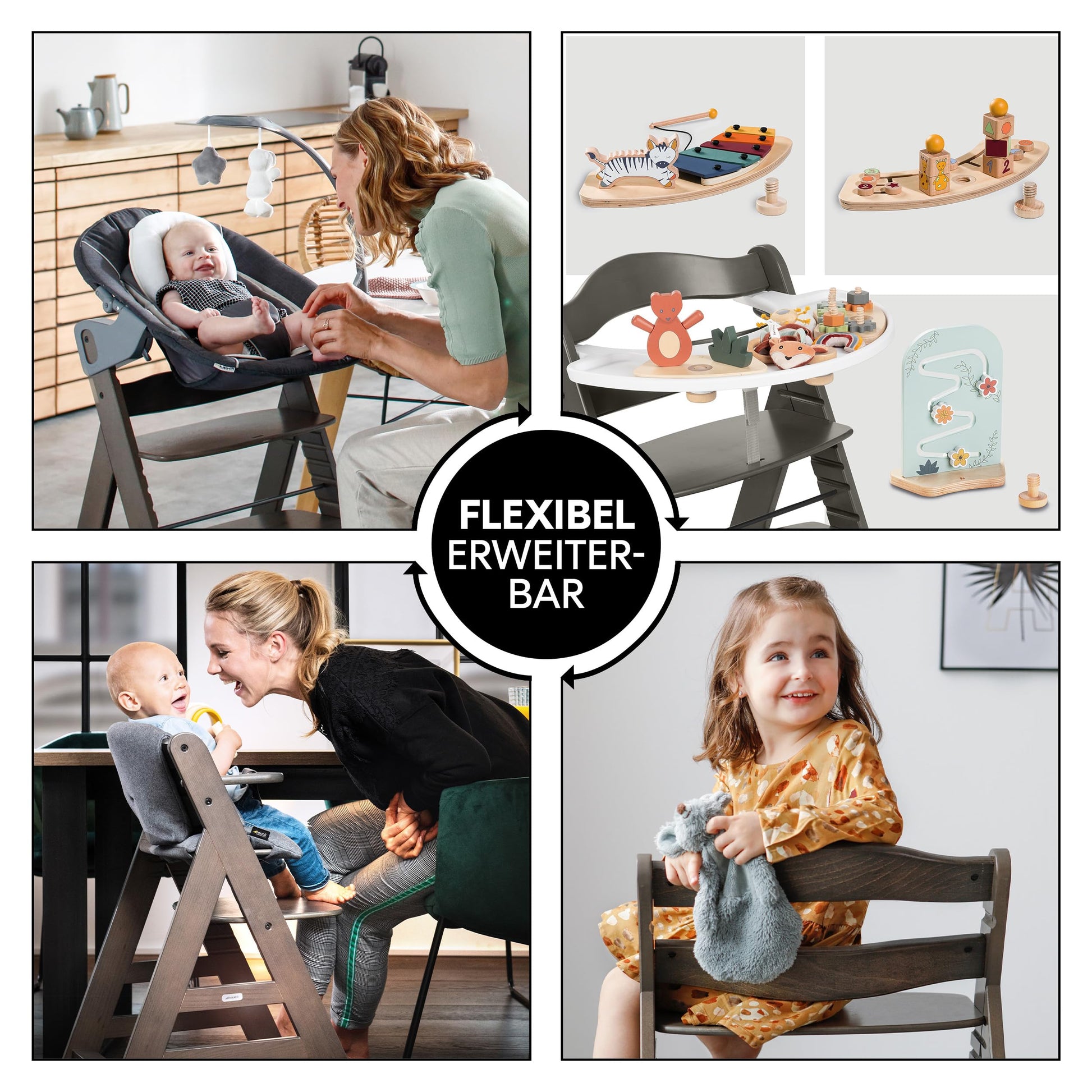 hauck Hochstuhl Alpha+ inkl. Tablett & Sitzpolster - Mitwachsender Babystuhl aus Holz, Kinderhochstuhl ab 6 Monate, verstellbar - Charcoal