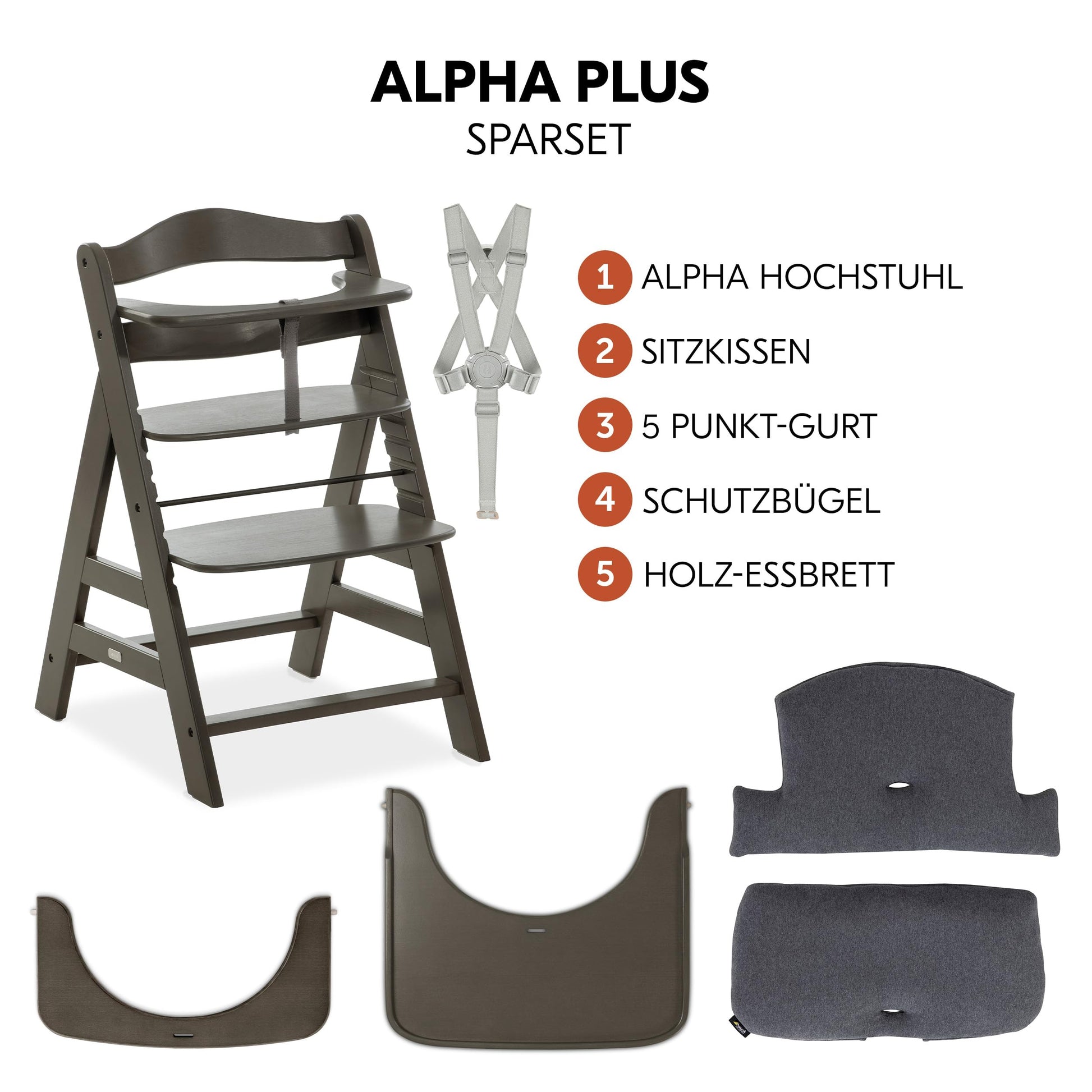 - Alles dabei: Zusätzlich zum Alpha Plus (ab ca. 6 Monaten geeignet) erhalten Sie in diesem Set ein Essbrett, ein 2-teiliges Sitzkissen, einen Schutzbügel und einen Sicherheitsgurt.