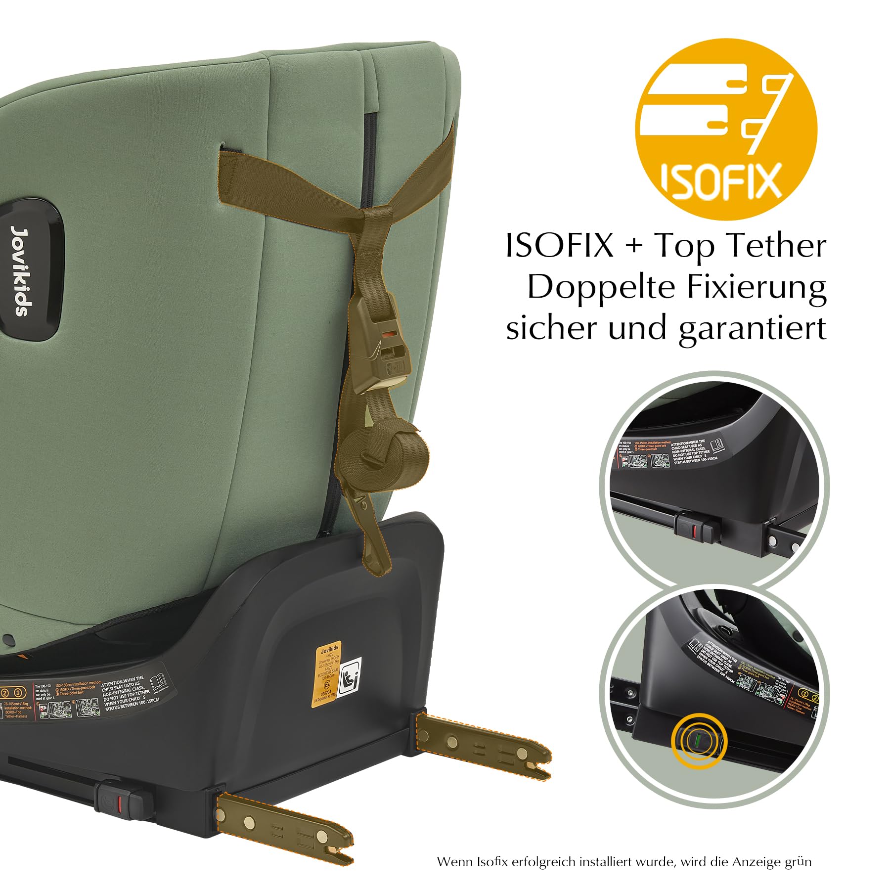 Jovikids 360° Drehbar Kindersitz mit ISOFIX und Ruheposition, i-Size(ECE R129) 40-150cm(0-36kg) Reboarder Baby Autositz, ab Geburt -12 Jahre (grün)