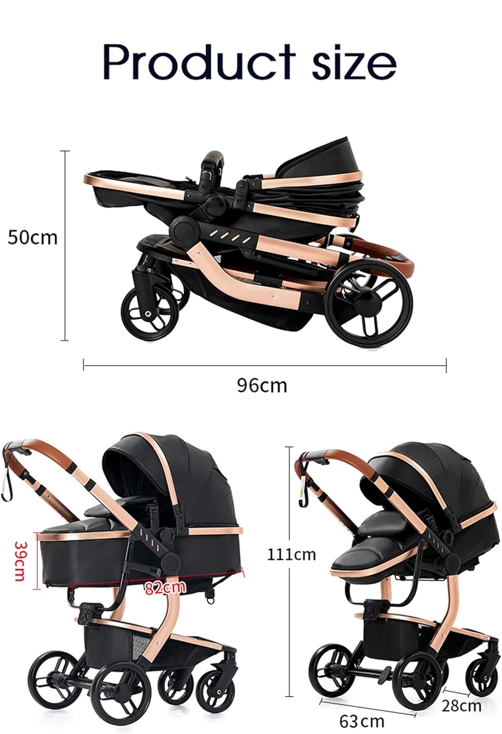 NADDLILY PU-Leder Kinderwagen 3 in 1, Buggy mit Umkehrbarem Zwei-Wege-Schub, Kinderwagen Faltbarem Tragbarem One-Click-Design, Kinderwagen 3 in 1 Komplettset mit Zubehör Hohe Landschaft (L518 Khaki)