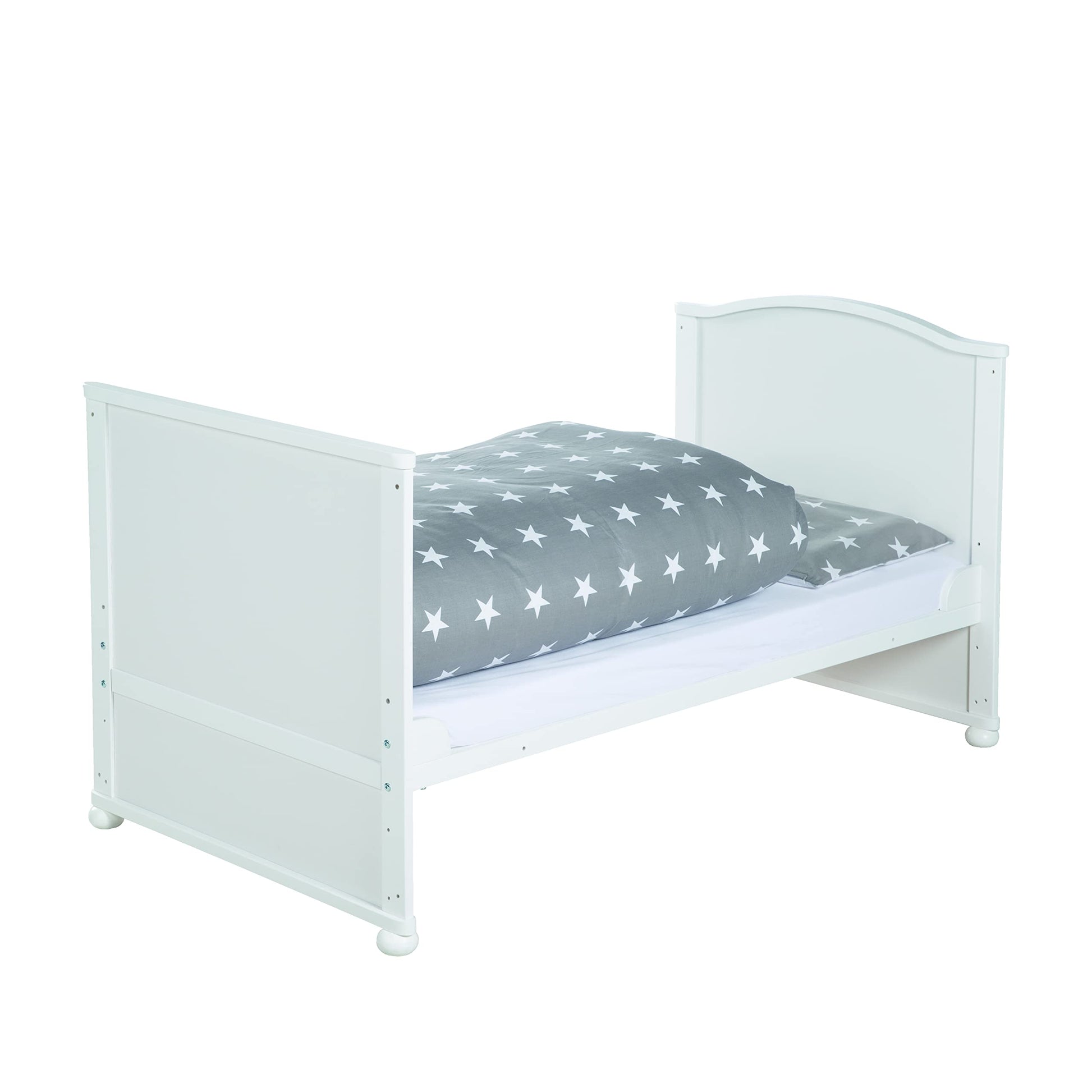 roba Babybett Set Little Stars - 70 x 140 cm - Kinderbett mitwachsend / umbaubar + komplette Textilien im Sterne Design - Höhenverstellbar - Holz weiß