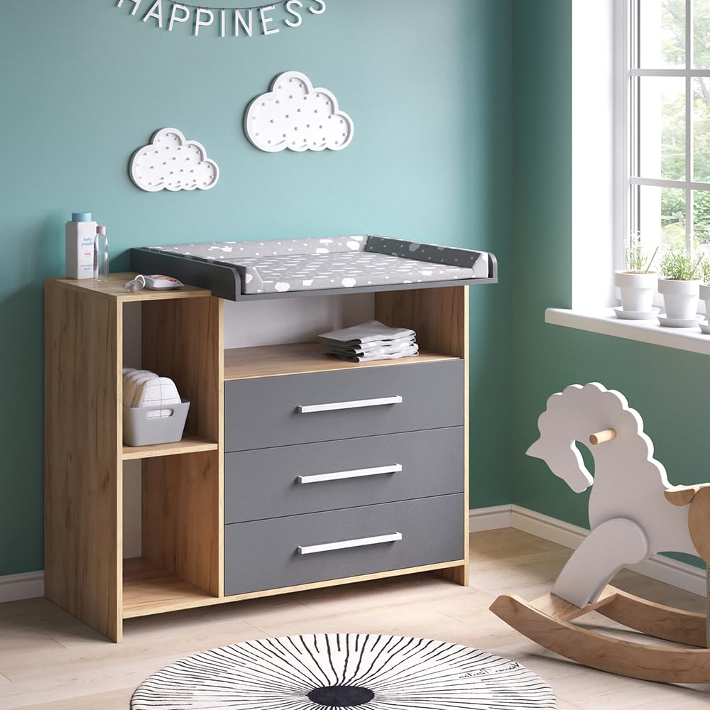 Vicco Wickelkommode Oskar, Wickelaufsatz für die Kommode, Goldkraft Eiche/Anthrazit, 113 x 100 cm